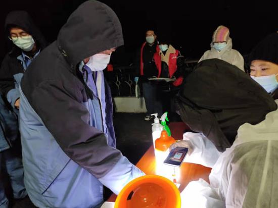 这次筛查时间紧、任务重,为了完成任务,布置检查设备,社区工作人员早晨5点钟开始上岗,紫金北里的检查点,设在老干部活动中心门前。