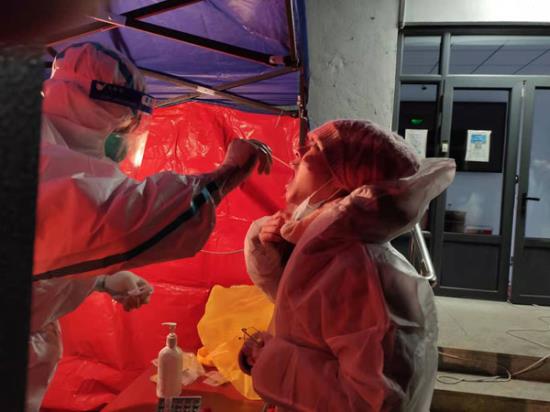社区内的耄耋之龄的人员比较多,有的行动不便。工作人员采取“敲门行动”,入户为这些老年人进行核酸筛查。