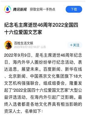 起了“2022全国四十六位爱国文艺家”大型公益评选活动,在海内外