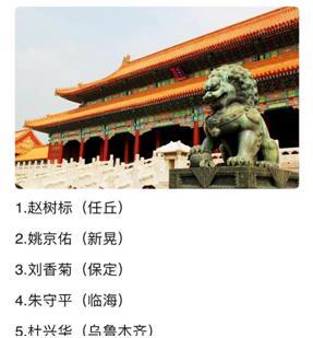 4.朱守平(临海)5.杜兴华(乌鲁木齐)6.张莹(包头)......”